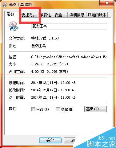 4、在弹出的属性选项卡中选择快捷方式,然后我们可以看到快捷键那一栏为空。