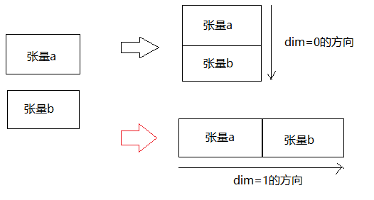 功能:在不改变张量维度的情况下,通过增加张量在某个维度方向的长度,把两个张量拼接起来。
