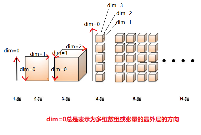 - 随着张量维度的增加,张量维度的标识dim的范围也在扩宽