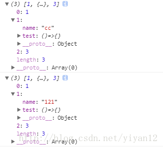 var a1 = [1,{name:'cc',test:()=>{}},3];
