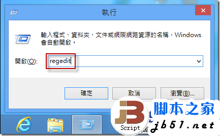 1. 按【Win 视窗键】+【R】,出现【执行】,输入 regedit 按 Enter 键。