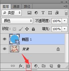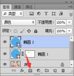 选择椭圆2图层,点击如图所示图标,添加图层蒙版,选择画笔工具,设置前景色为黑色,背景色为白色,把画笔调小,然后把超出眼珠的地方擦去(这边在处理的时候要细心)。