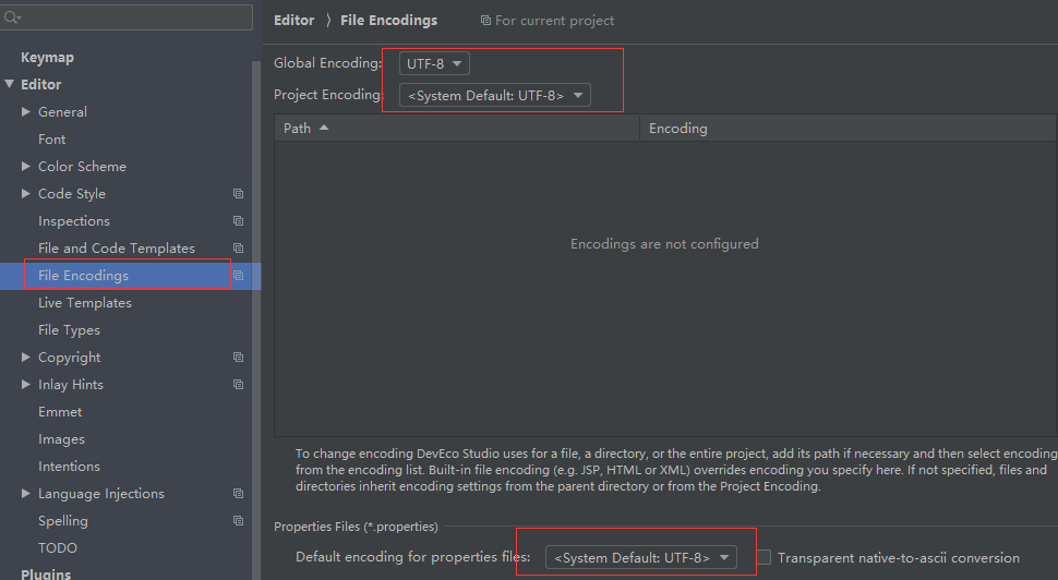 File—>Settings—>Editor—>File Encodings,设置编码格式为(UTF-8)