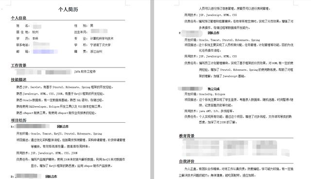 ②简历模板: