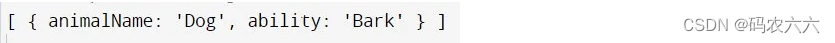 {animalName: "Dog", ability: "Bark"},