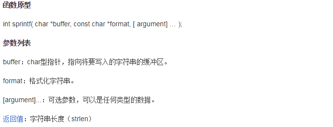 sprintf()把格式化的数据写入字符串str,如下图(来自百度百科)。所以这里的意思是,把item->valueint数字转化为str字符串。这里我发现百度百科讲的特别详细,想仔细了解的可以去看看。