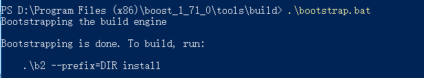 找到tools文件夹里的build文件下的bootstrap.bat文件,打开command命令窗口后运行bootstrap.bat文件将出现如下截图