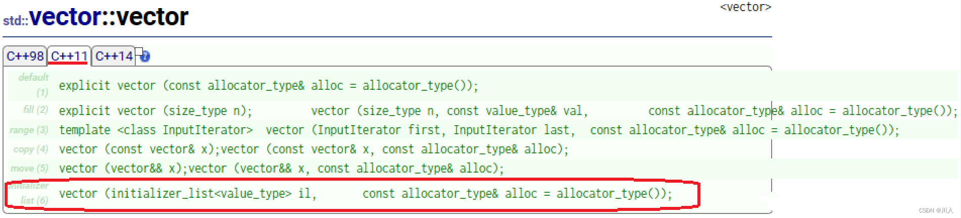 - std::initializer_list一般是作为构造函数的参数,C++11对STL中的不少容器就增加