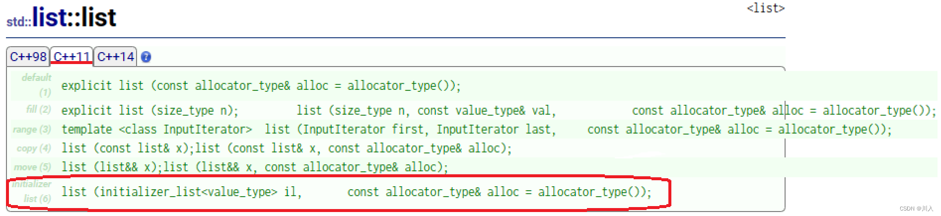 list的构造函数的相关文档