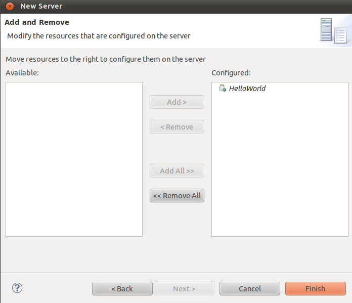 如果已经执行过"new server wizard"了,只需右键选择"Add and Remove..."即可