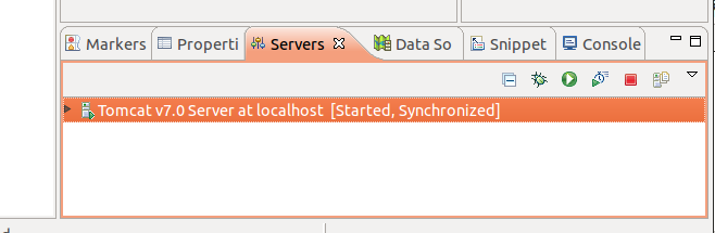 在Server选项卡中会新出现一项"Tomcat v7.0 Server",右键它,选择Start,这样Tomcat服务器就启动起来了,如下图: