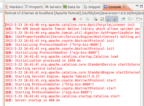 在http://tomcat.apache.org/下载Tomcat的已经编译好的映像文件,我的是Tomcat 7.0.27 Released