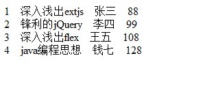s+=id+" "+name+" "+author+" "+price+"<br>";
