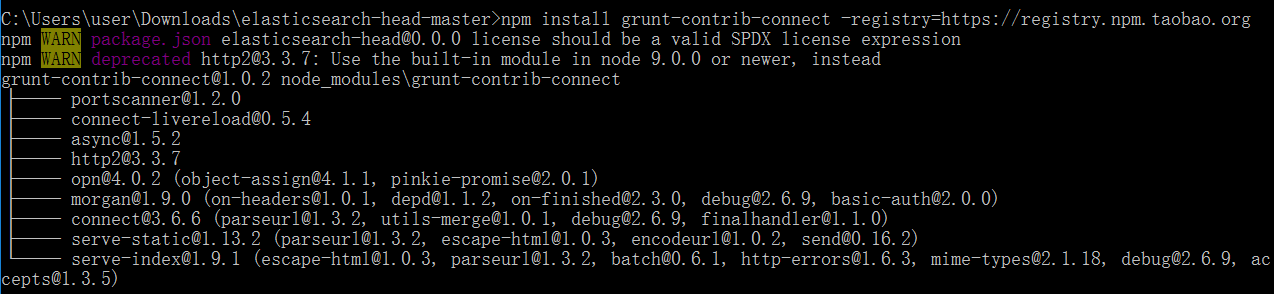 npm install grunt-contrib-watch –registry= https://registry.npm.taobao.orgnpm install grunt-contrib-connect –registry= https://registry.npm.taobao.org