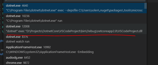 我们的dotnet watch run正在运行, 这时候我还想进行debug, 那么就可以选择dotnet exec这个选项, 它会执行dotnet watch run实时build出来的dll. 这两个动作是在不同的进程执行的.