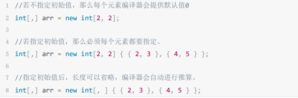 数据类型【,,...】 数组名=new 数据类型【,,...】{{, , ...},{, , ...}};