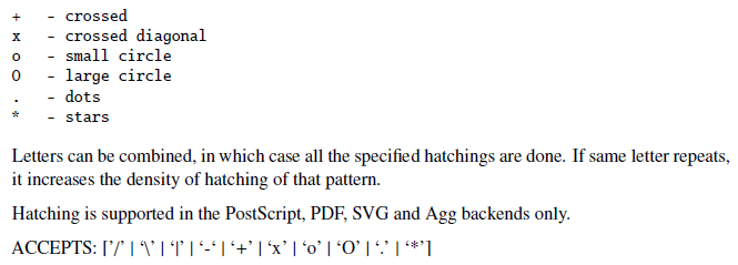 如果想在柱状图内部填充图案,用hatch。