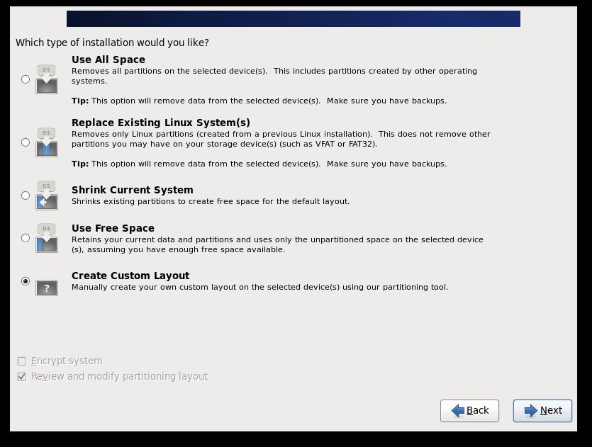 接下来选择自定义系统分区:
