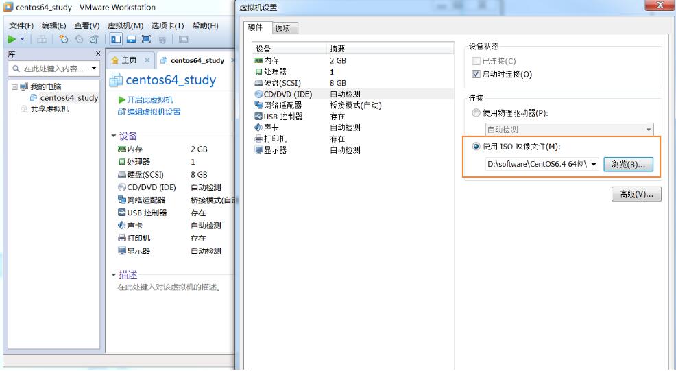 13、虚拟机,右键->设置,把iso文件插入光驱即可