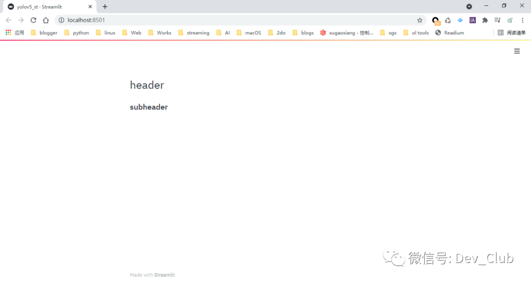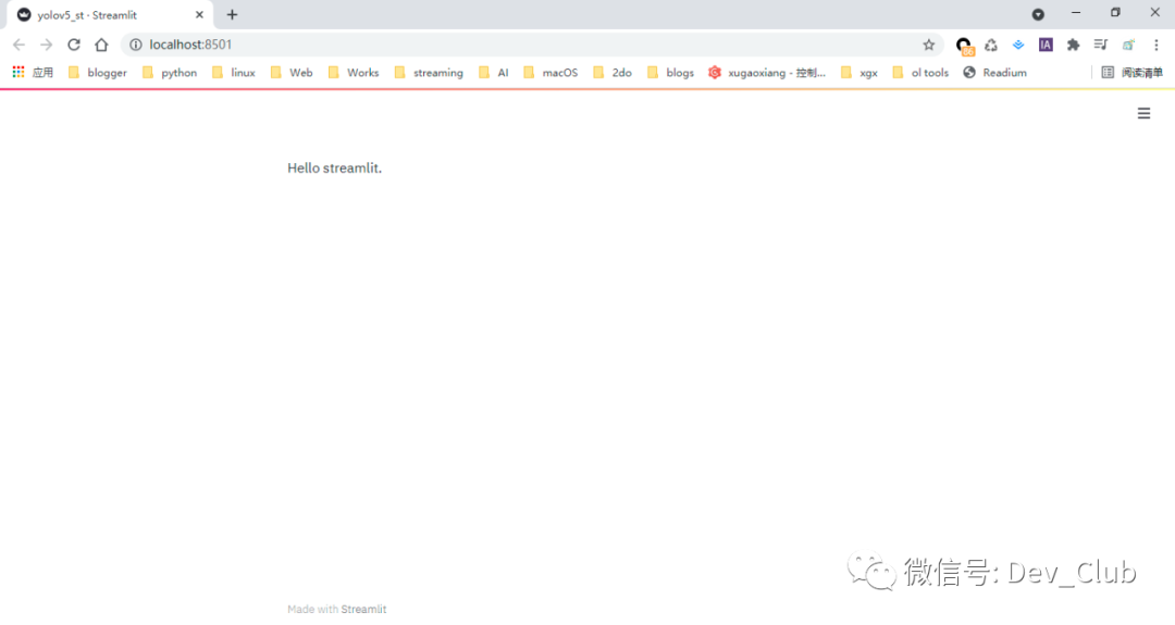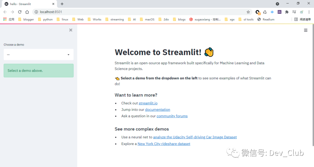 服务启动后,它会自动帮我们打开页面,地址是 http://localhost:8501