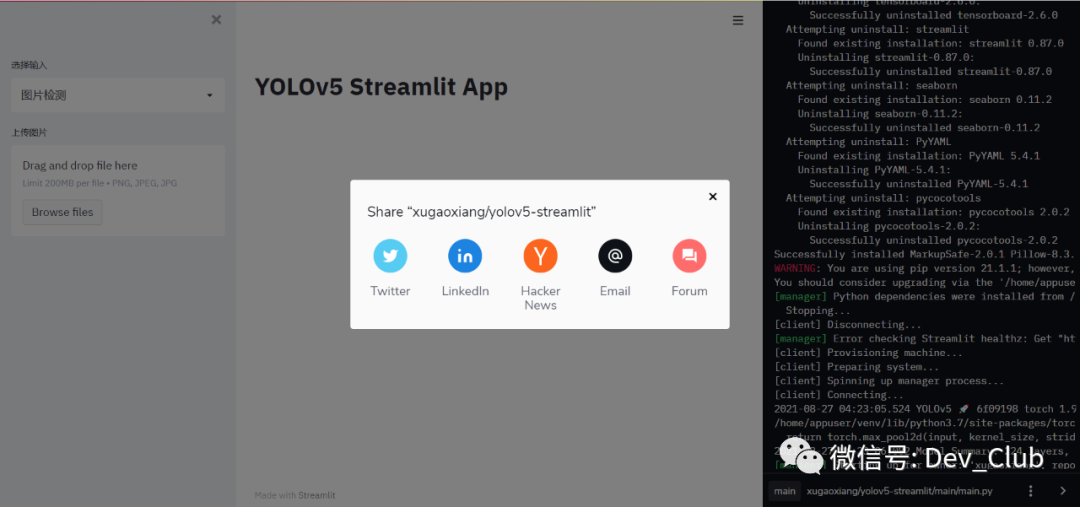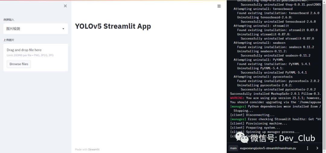 以上就是受伤帆布鞋最近收集整理的关于Streamlit部署YOLOv5目标检测的全部内容,更多相关Streamlit部署YOLOv5目标检测内容请搜索靠谱客的其他文章。