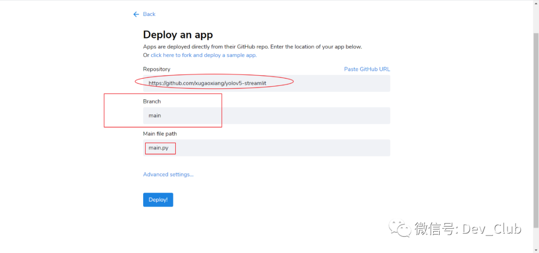 github中,默认是main分支,工程下需要有requirements.txt文件访问 https://share.streamlit.io/, 使用