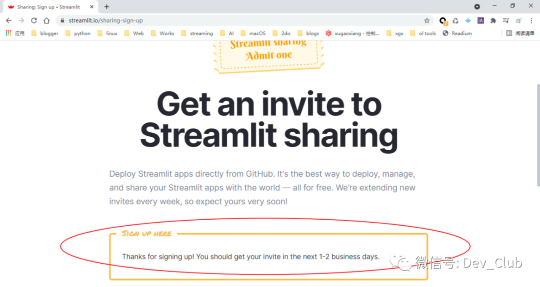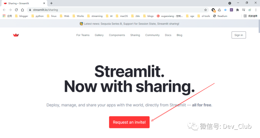 进入站点 https://streamlit.io/sharing ,请求邀请