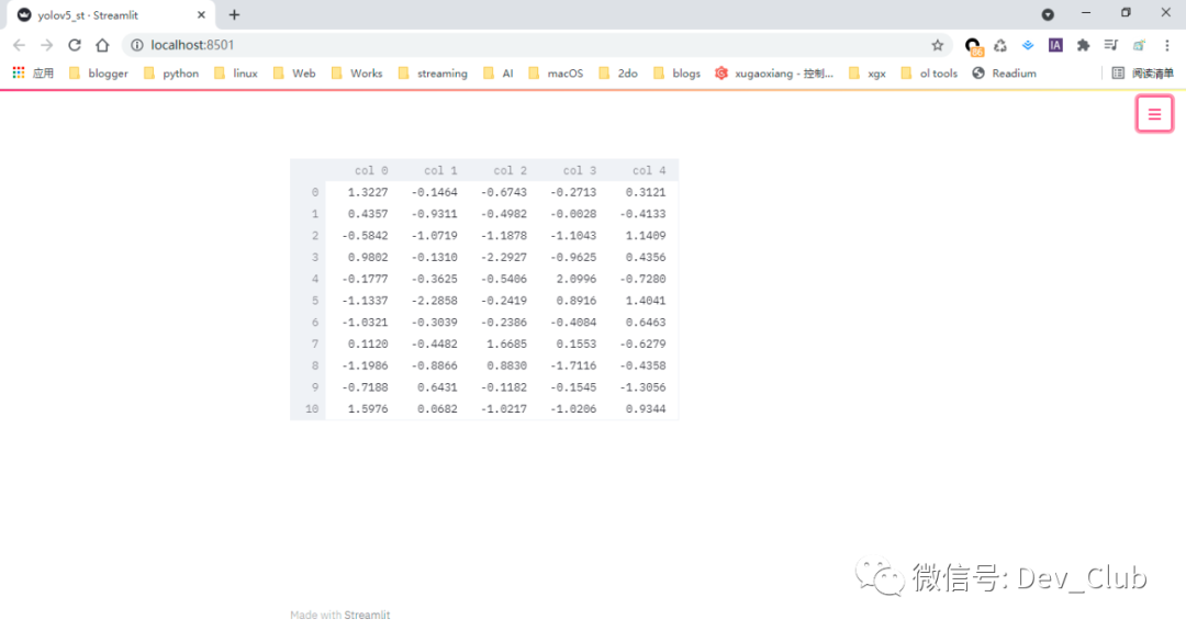 最后一句中的st.dataframe(df)可以用st.write(df)来代替,效果一样