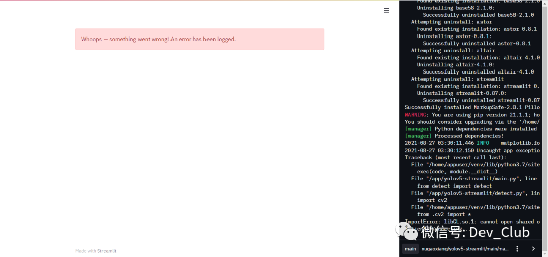 这里需要将requirements.txt文件中的opencv-python更改为opencv-python-headless