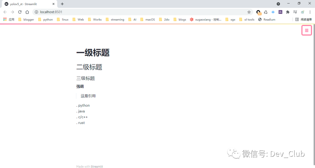 streamlit完美支持markdown语法,可以直接使用write方法,来看示例