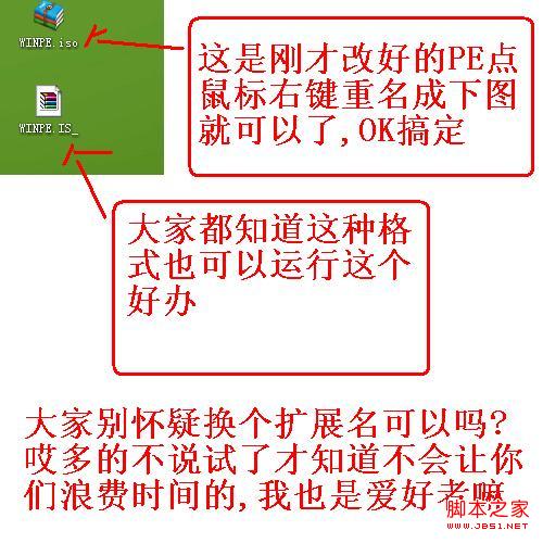懂一点电脑的都会重名吧先把WINPE.IS_复制后再删除WINPE.iso要不然会显示有文件名的,因为.IS_键盘不会打就复制吧,怕你们不懂,说的清楚点再不懂加QQ136905966改过后可以用的