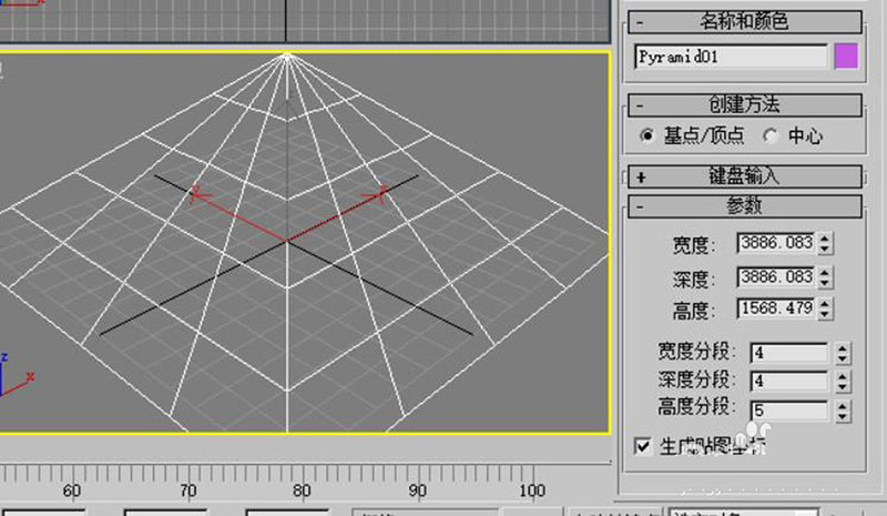 1、打开3dmax,建立一个四棱锥模型。宽度,深度和高度分段自己根据需要而定。