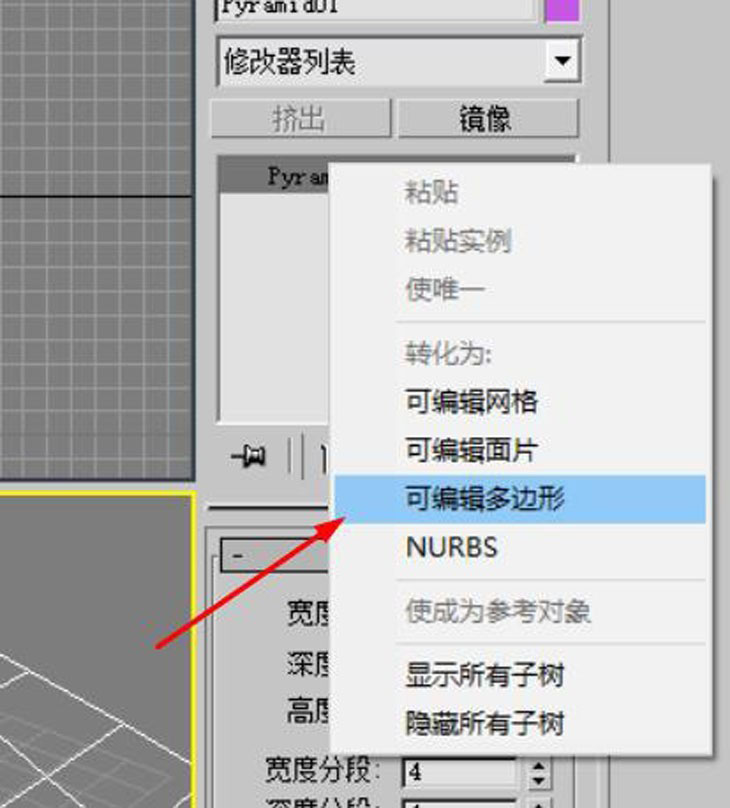 2、将四棱锥模型转换成可编辑多边形。