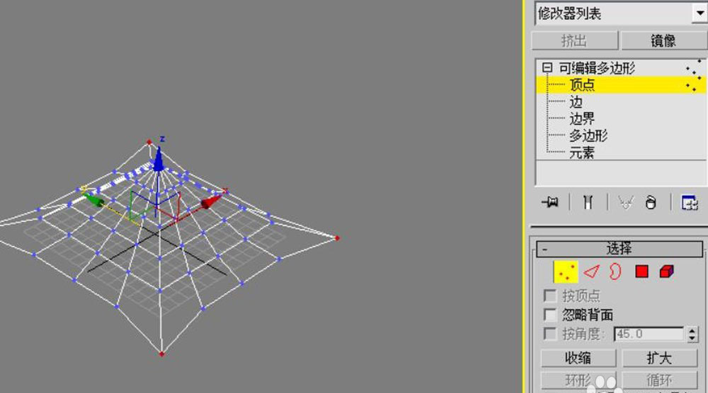 7、回到顶点级别,选择四个角的顶点向上移动。
