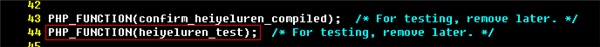 找到:PHP_FUNCTION(confirm_heiyeluren_compiled); ,新增一行: