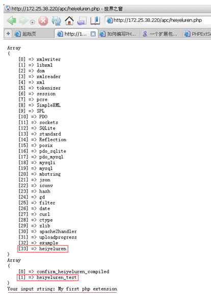 需求:比如开发一个叫做 heiyeluren 的扩展,扩展里就一个函数 heiyeluren_test(),输入一个字符串,函数返回:Your input string: xxxxx。