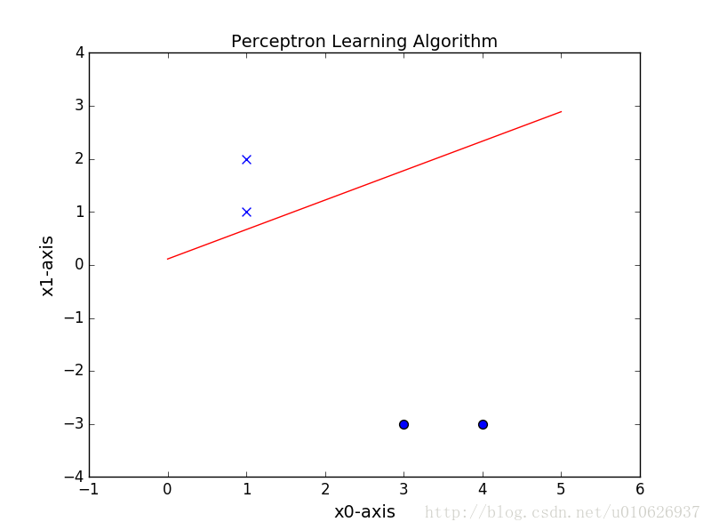 y=(-self.b-self.w[0]*x)/self.w[1]#注意在此,把x0,x1当做两个坐标轴,把x1当做自变量,x2为因变量