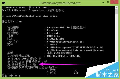 2、输入netsh wlan show drive (可以直接复制哟)然后回车。