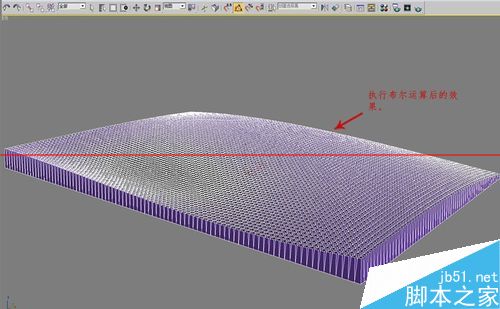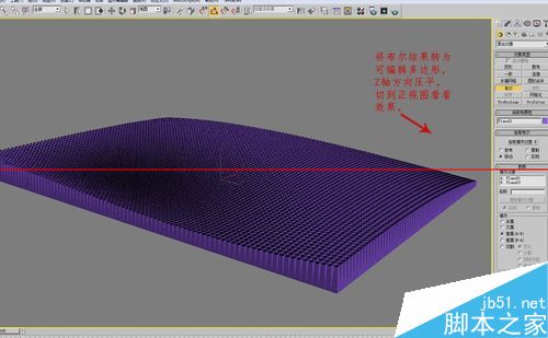 19、将布尔结果转为可编辑多边形,Z轴方向压平,切到正视图看看效果。