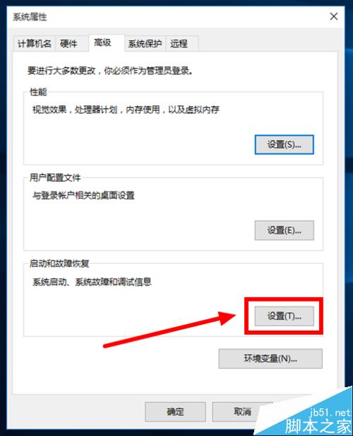 4、选择启动和故障恢复分类下的“设置”左键单击。