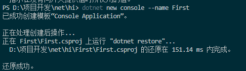 5. 用命令行创建一个控制台程序:dotnet new console --name First