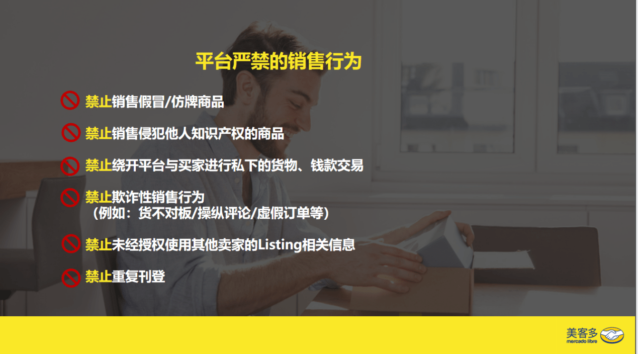 随着美客多在墨西哥、巴西、智利、哥伦比亚的强势增长,越来越多的中国卖家正在摩拳擦掌,跃跃欲试,有不少中国卖家已经入驻MercadoLibre CBT(美客多跨境店铺),看到本土电商的优势与红利。现场美客多高级品牌顾问Frank介绍了美客多平台的流量规则,也为新卖家带来了成长攻略及注意事项,从美客多listing的优化要点、维护店铺信誉的重要性等多方面为新手卖家提供扎实的“理论基础”。着重介绍了美客多平台严禁的销售行为,提醒各位卖家一定要遵守平台规则。