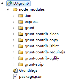 完了我们需要在grunt目录下执行 npm install将相关的文件下载下来: