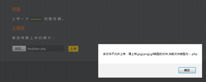 JS检测绕过攻击通常发生在用户选择上传文件时,如果上传的文件的后缀格式非法不允许上传,前端会进行弹窗提示,此时上传的文件校验并没有发送到服务端,而是由前端JS代码来过滤的。