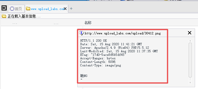 然后在菜刀工具中访问图片的链接地址http://www.upload_labs.com/upload/30412.png ,发现菜刀工具无法解析该文件: