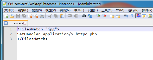 通过.htaccess文件调用php解析器解析一个文件名只要包含“jpg”这个字符串的任意文件,如果“jpg”这个字符串的任意文件的内容是一句话木马则可以利用中国菜刀进行连接。