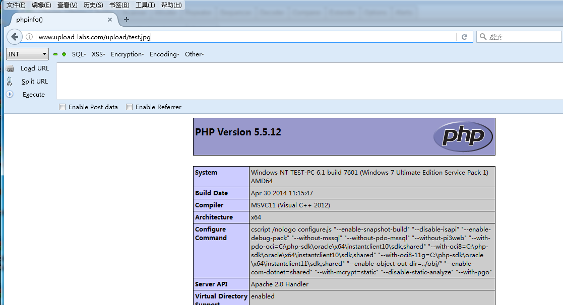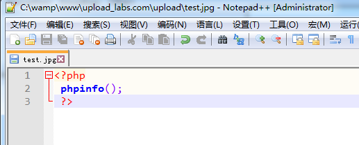 然后访问链接:http://www.upload_labs.com/upload/test.jpg ,说明后台把test.jpg文件的内容当做php代码来解析了: