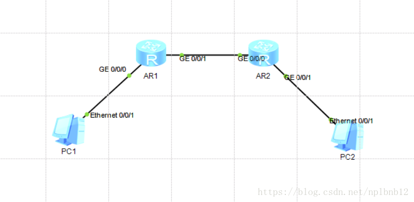 此时,10.0.2.0/24等直连网段路由会自动创建,PC可以ping通各个网关,AR1AR2的10.0.2.0/24网段也是互通的,但PC1、PC2无法ping通非直连网段,因为路由表里没有非直连网段的路由。此时手动添加静态路由即可: