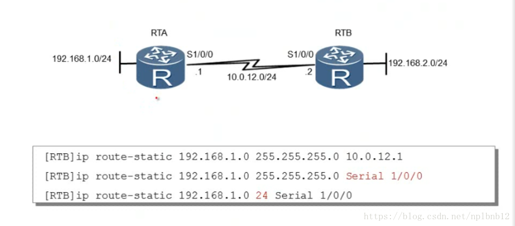 注意:在串行接口上,可以通过指定下一条地址或者出接口来配置静态路由,但在广播型的接口(如以太网接口)上配置静态路由时,必须要指定下一跳地址。所以最好直接统一指定地址。